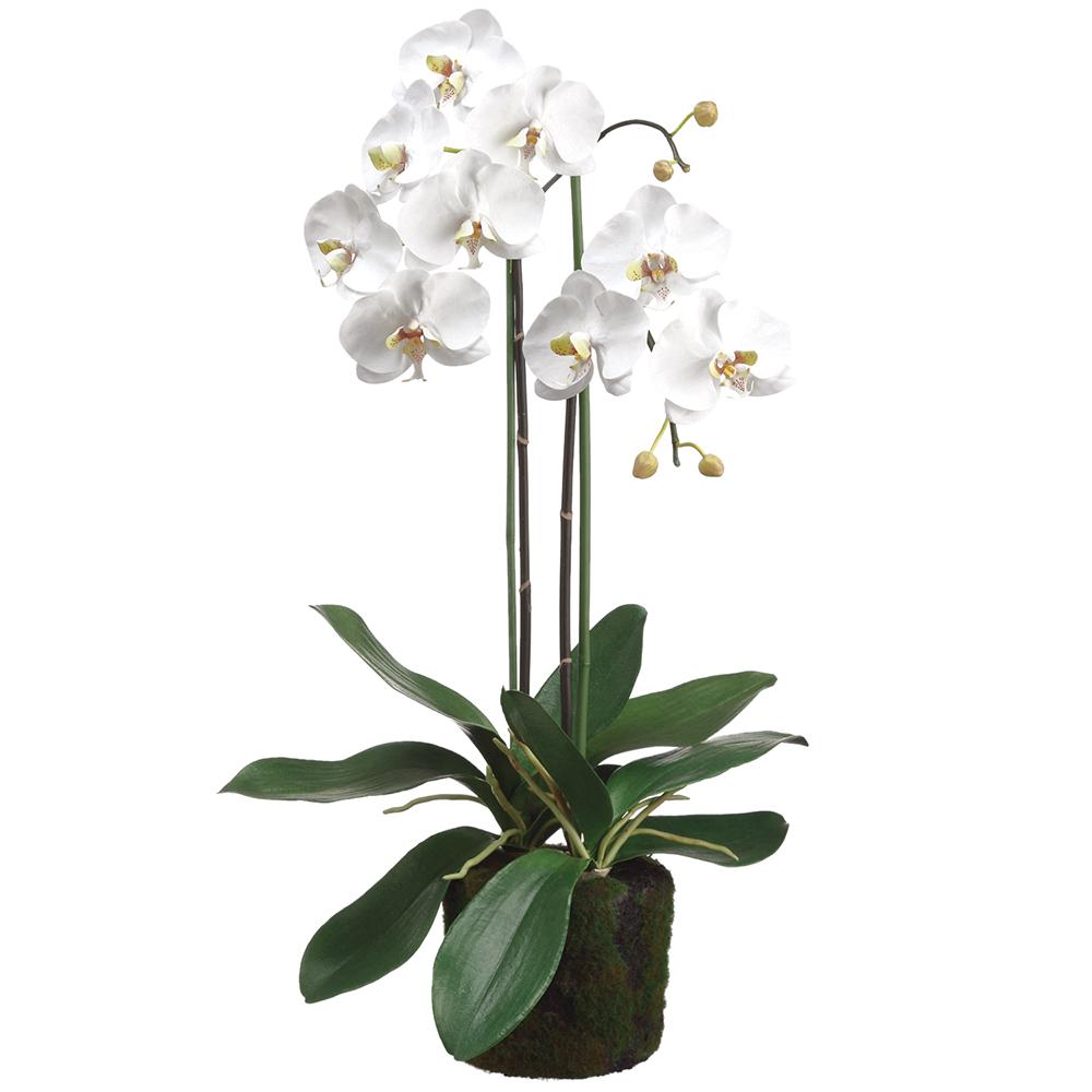 30" Phalaenopsis Orchid Plant With Soil And Moss White