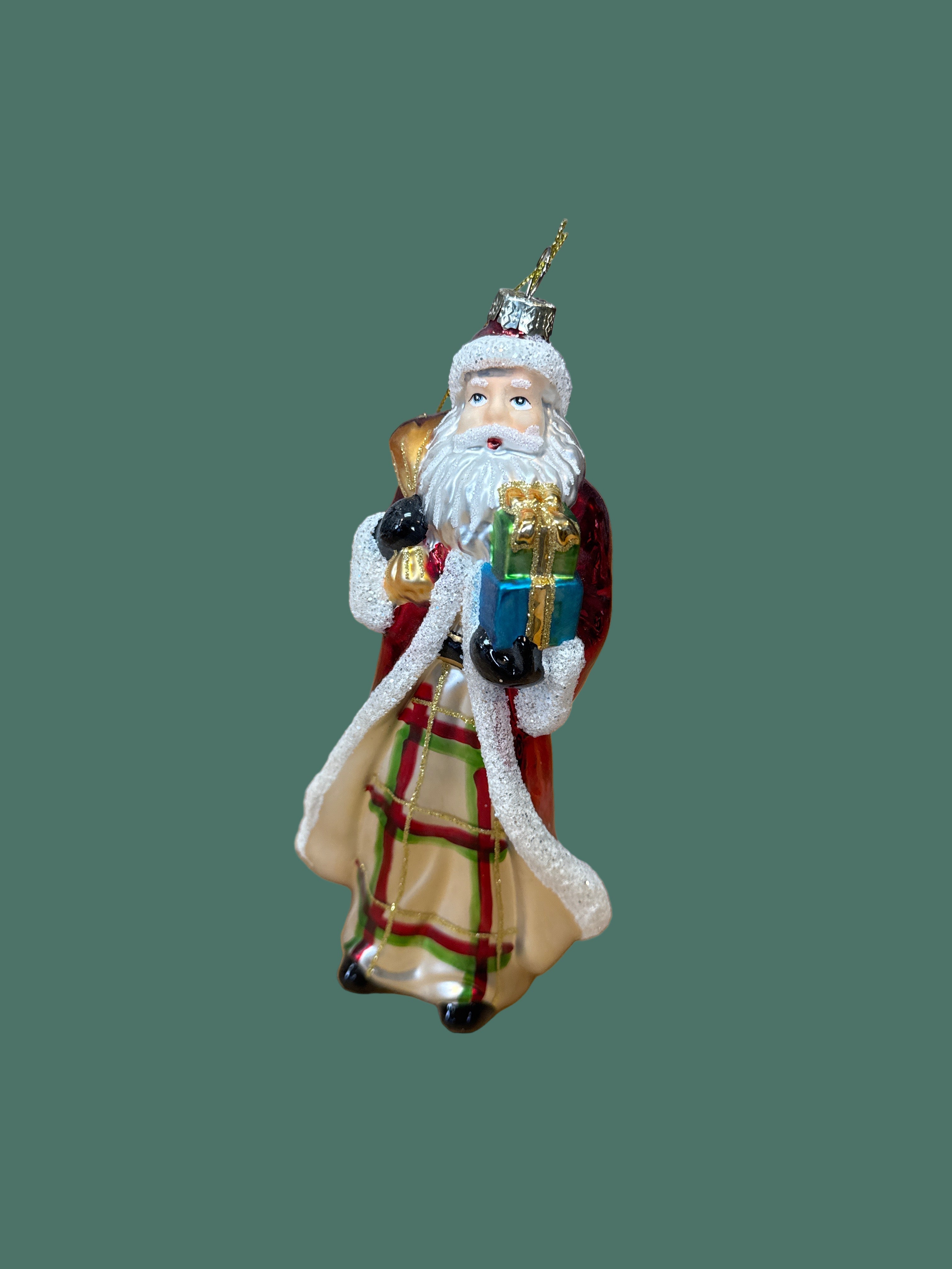 Glass Santa with Gifts Ornament