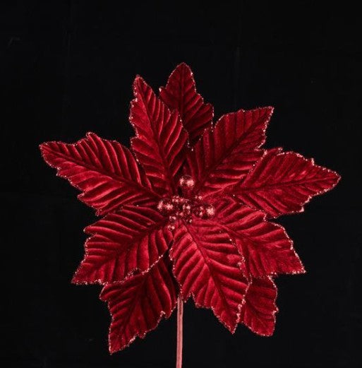 Embossed Burgundy Velvet Poinsettia Stem