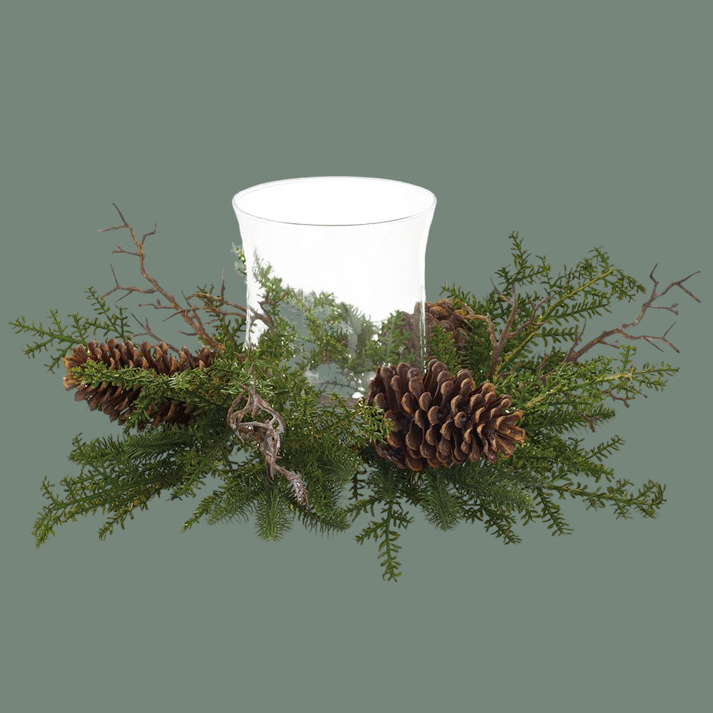 Pine Cone & Pine Centerpiece With Glass Candleholder