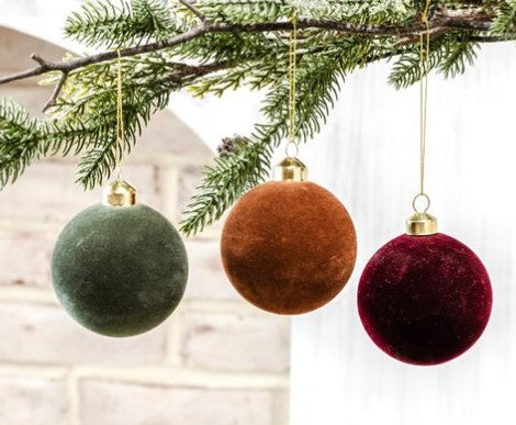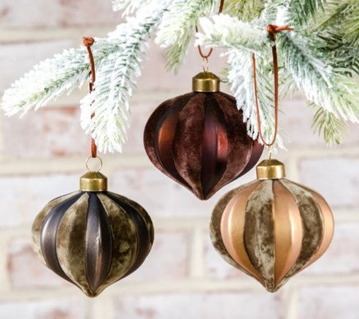 Set of 3 Velvet and Glass Teardrop Ornaments