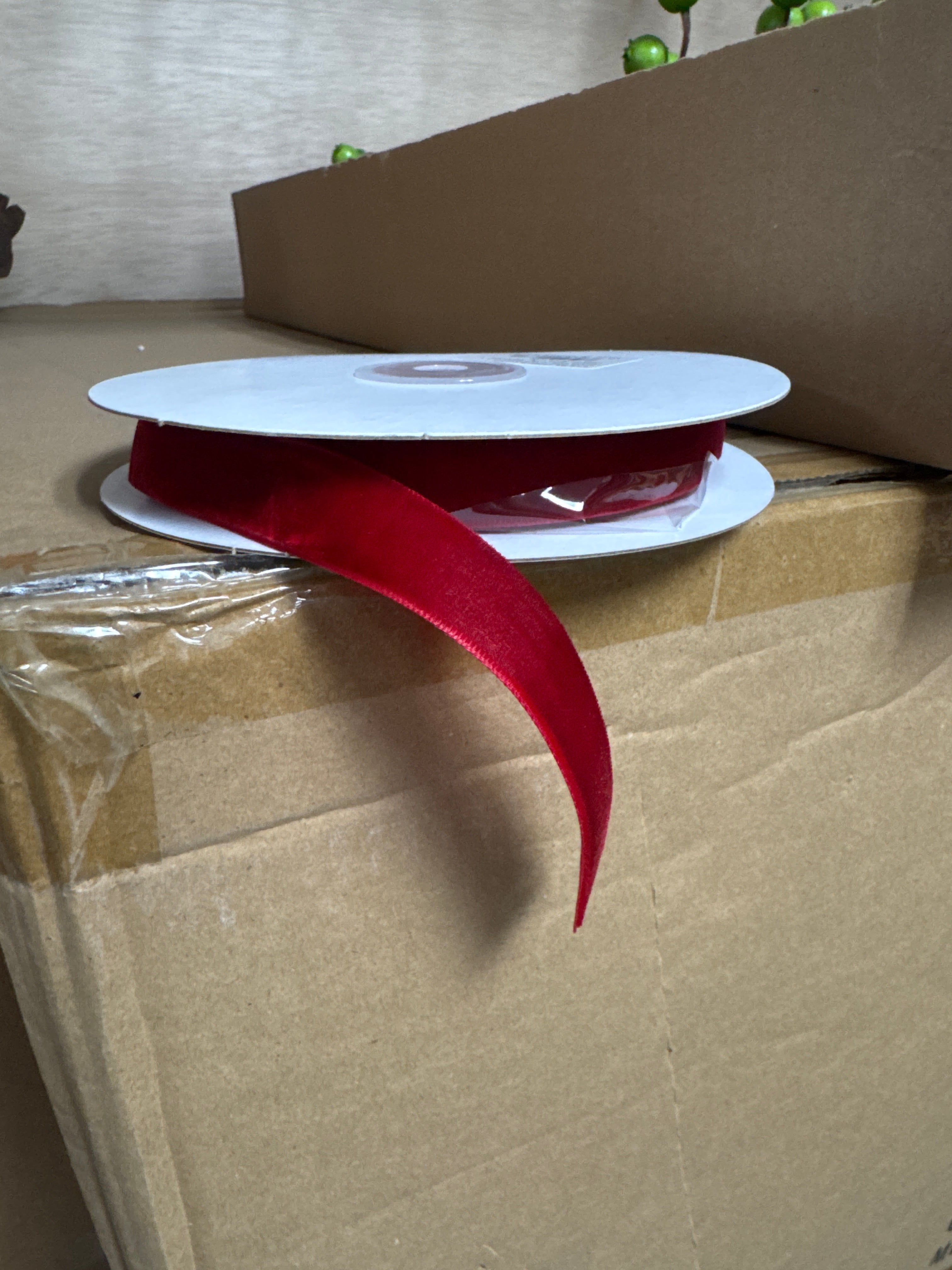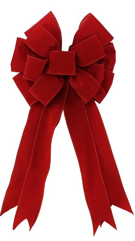 PREMADE VELVET BOW RED WITH WIRED EDGE