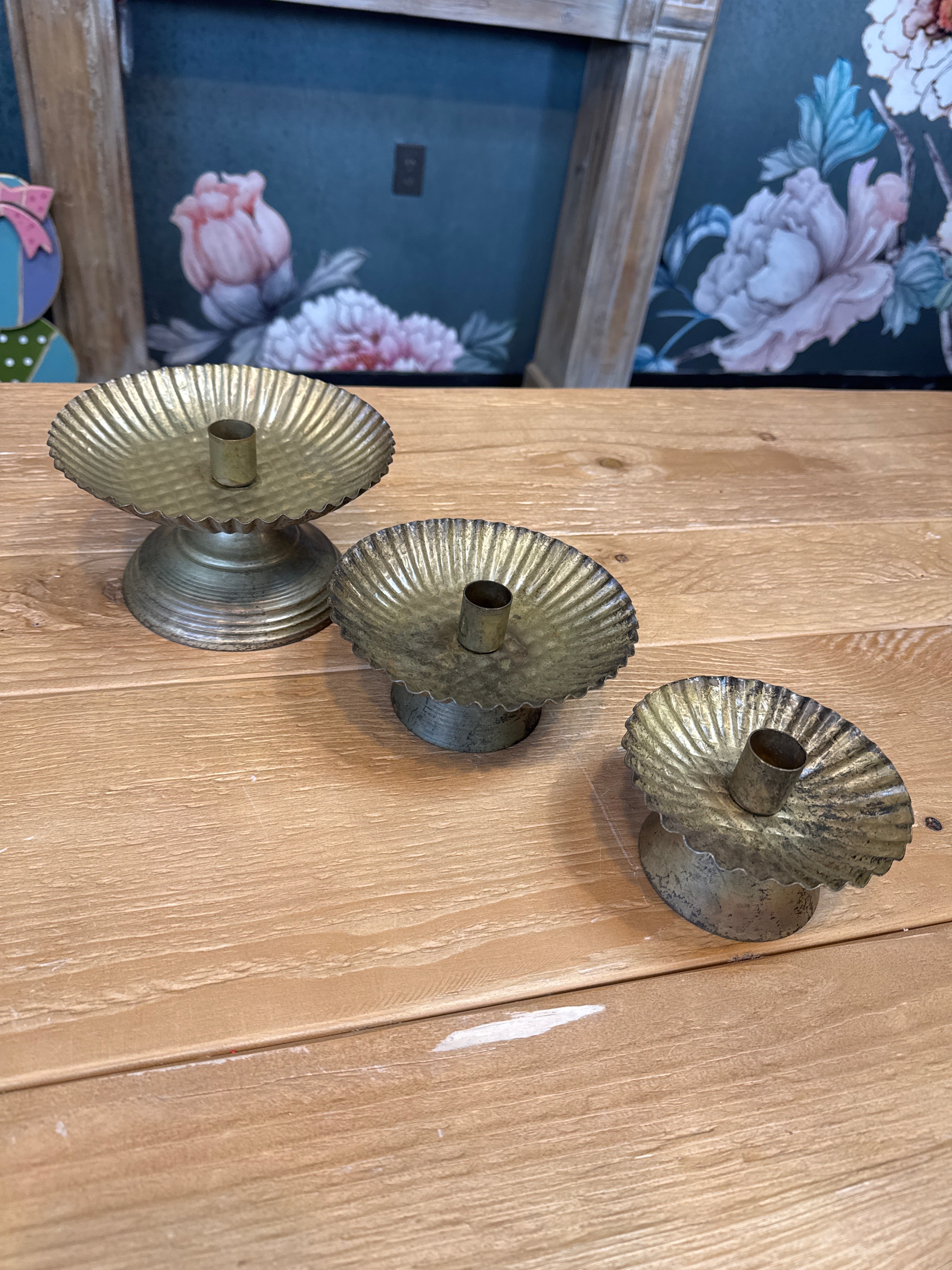 Antique Gold Taper Candle Holder with Fluted Base, Size Options