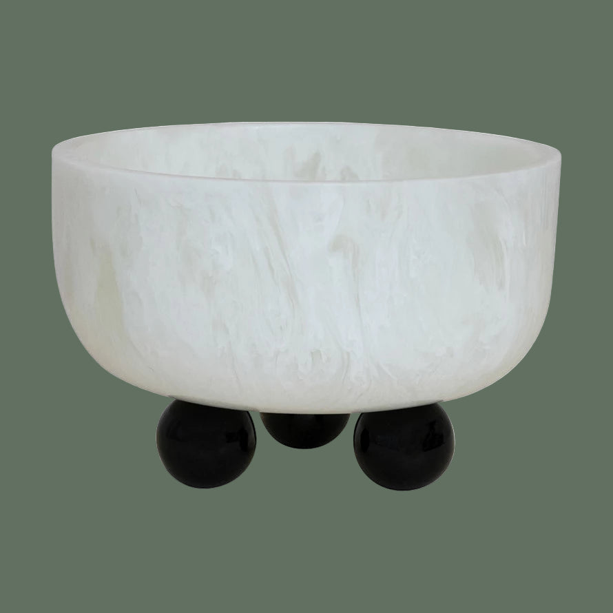 White and Black Marbled Resin Bowl with Ball Feet