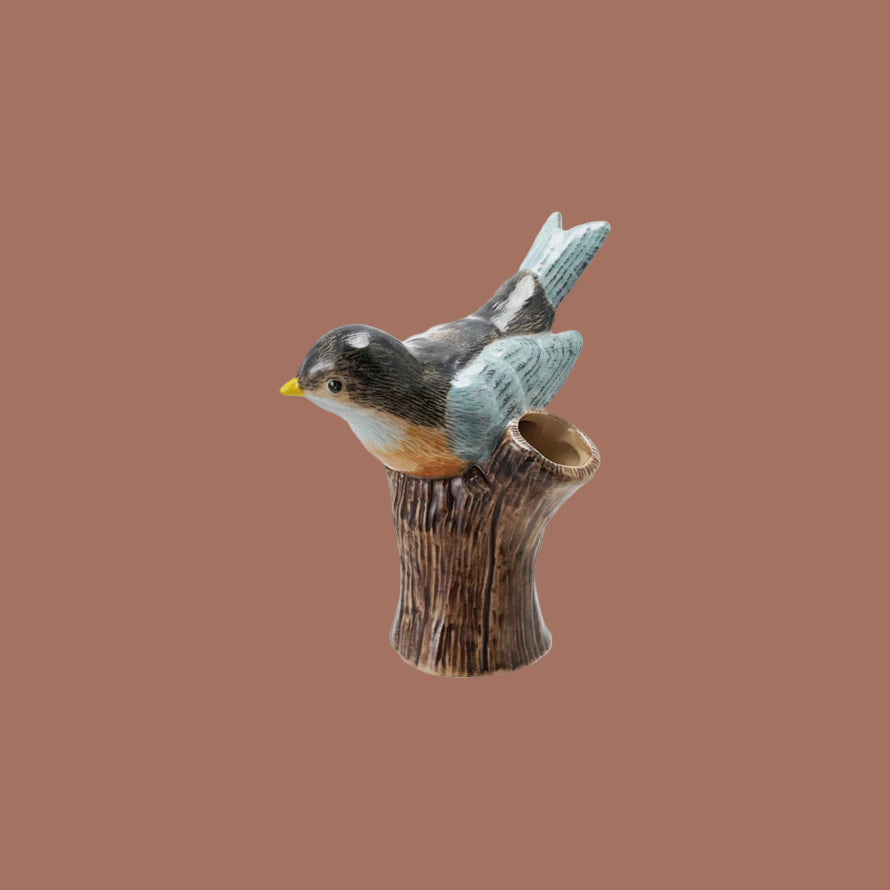 Stoneware Bird on Log Shaped Vase