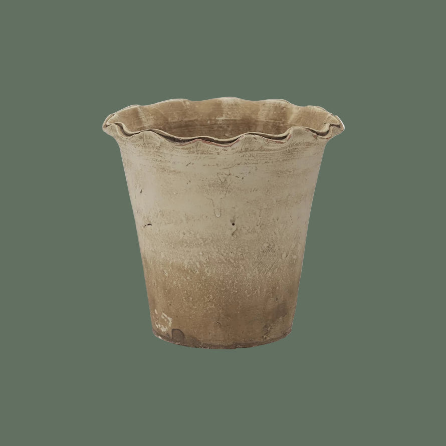 Terra-cotta Planter with Ruffled Edge, Distressed Finish