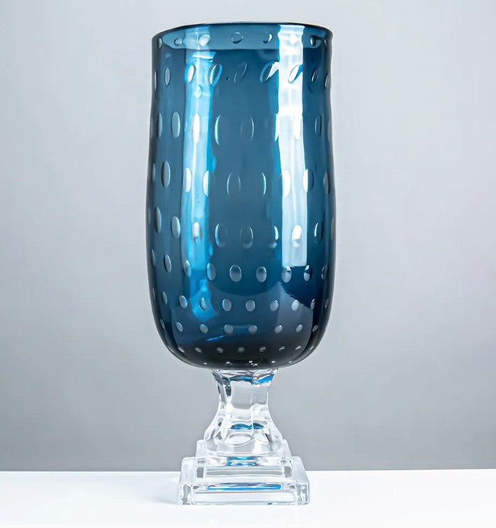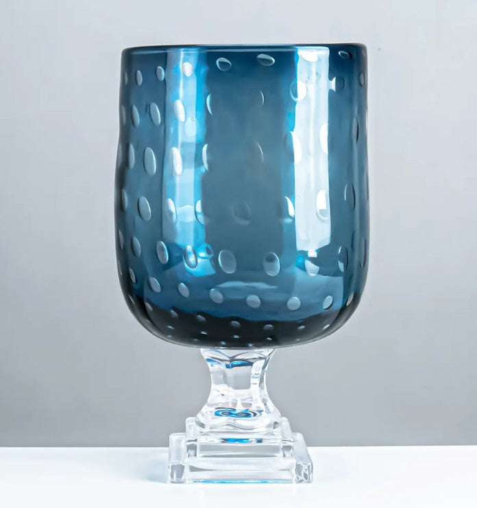 Blue Glass Vase on Pedestal, 2 Size Options