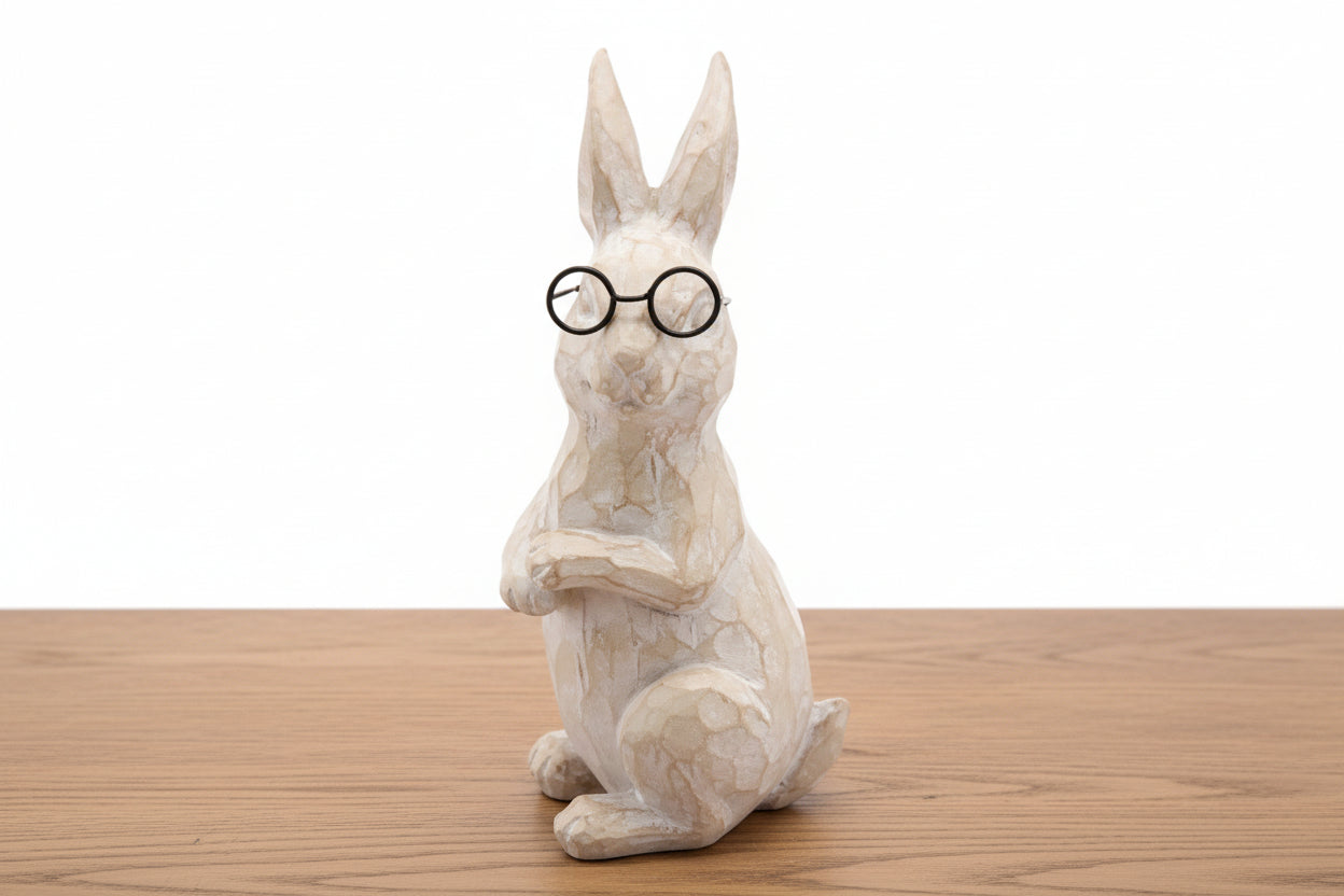 Tan Carved Bunny with Glasses