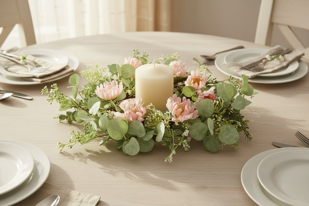 Pink Floral and Eucalyptus Ring