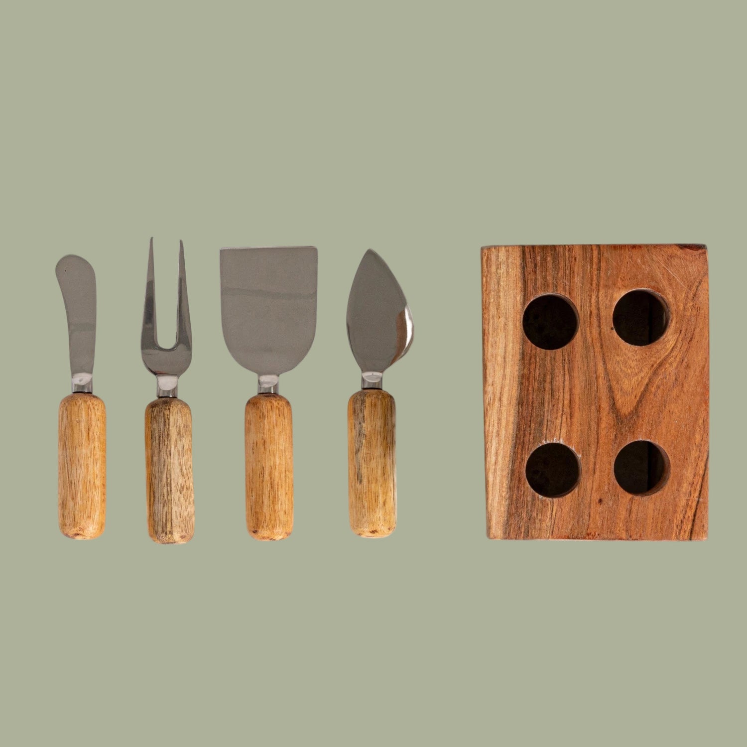 Mango Wood Scalloped Cheese/Serving Board with Cheese Knife