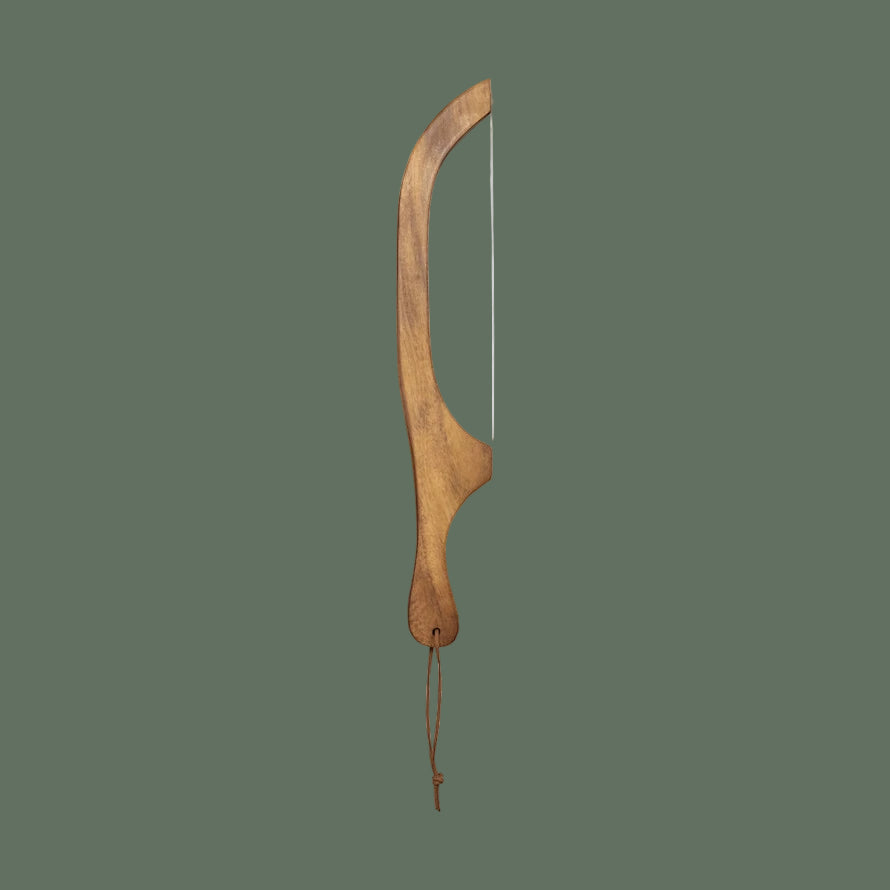 Wood Bread Bow Knife with Stainless Steel Blade & Faux Leather Tie