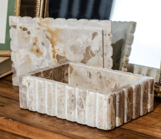 Metal Ribbed Planters with Scalloped Rims, Antique Gold Finish, 5 Size Options