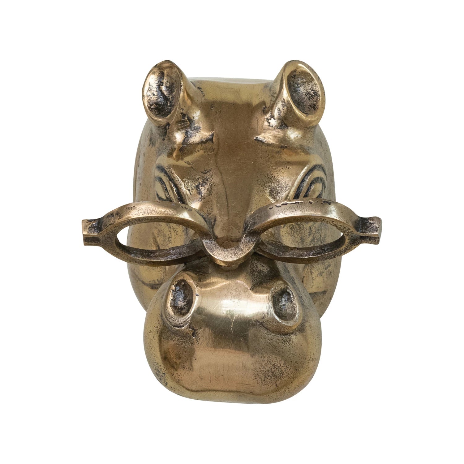 Aluminum Hippo Head with Eyeglasses Wall Décor