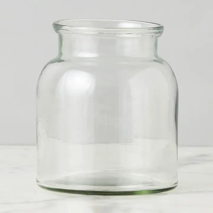 In villages throughout Europe, these wide mouth glass jars were used for the summer harvest. Stunning on their own or en masse, the free form of the vessel ensures it is a striking decorative accent. Perfect for use as a flower vase, organizing small objects throughout the home, or for merchandising in a store.