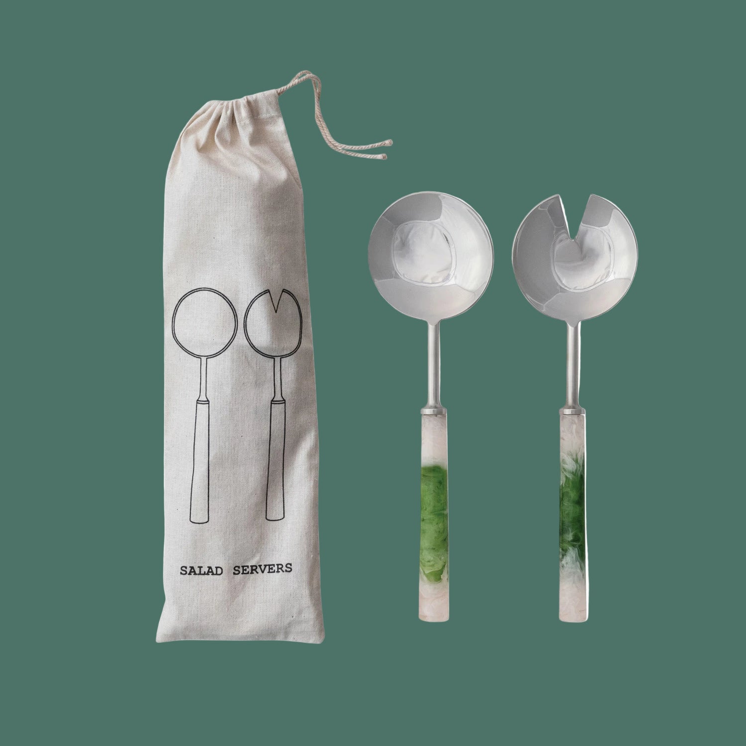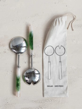 Stainless Steel Salad Servers with Marbled Resin Handles