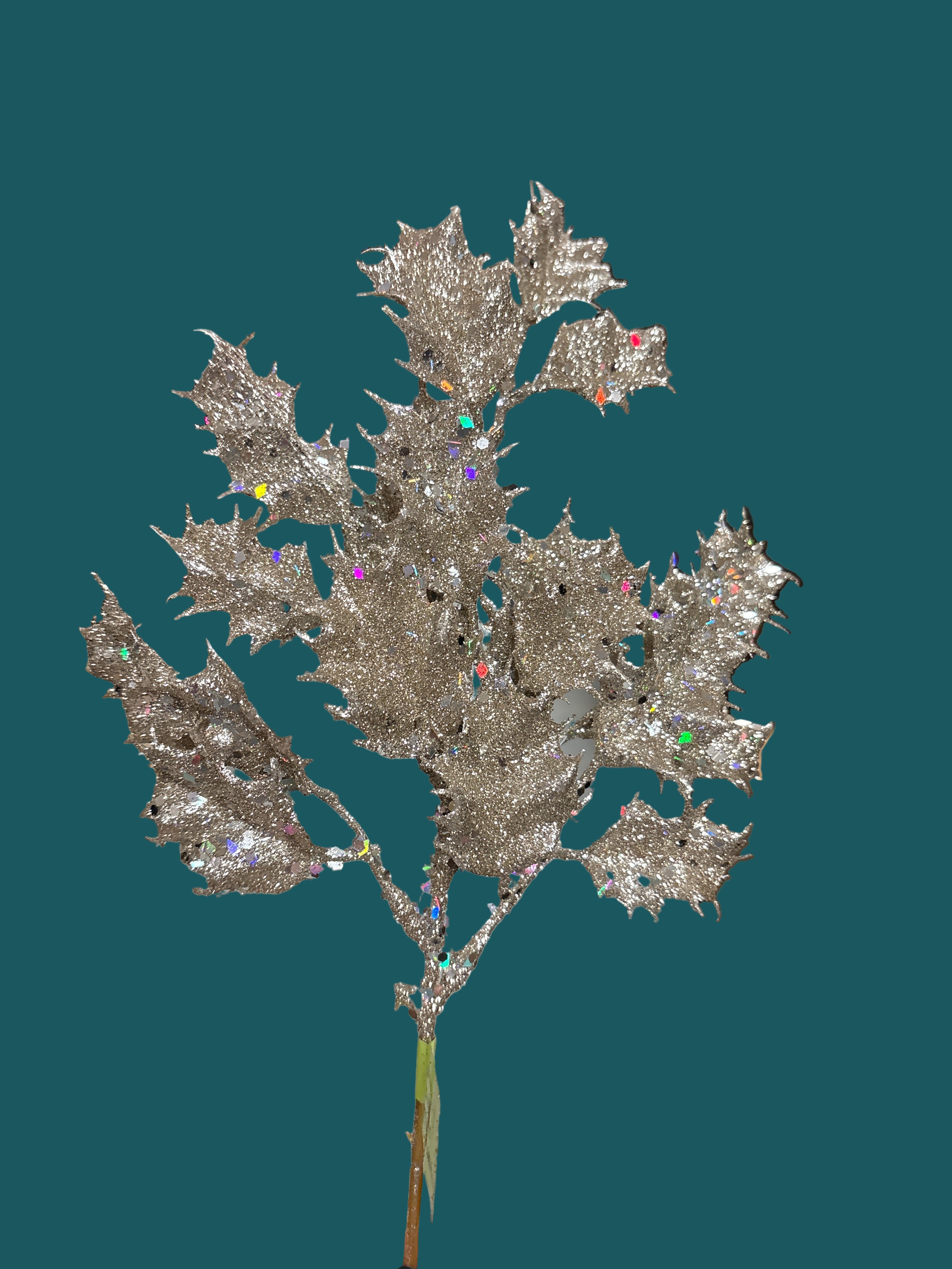 Glitter Holly Leaves Pick, 2 Color Options