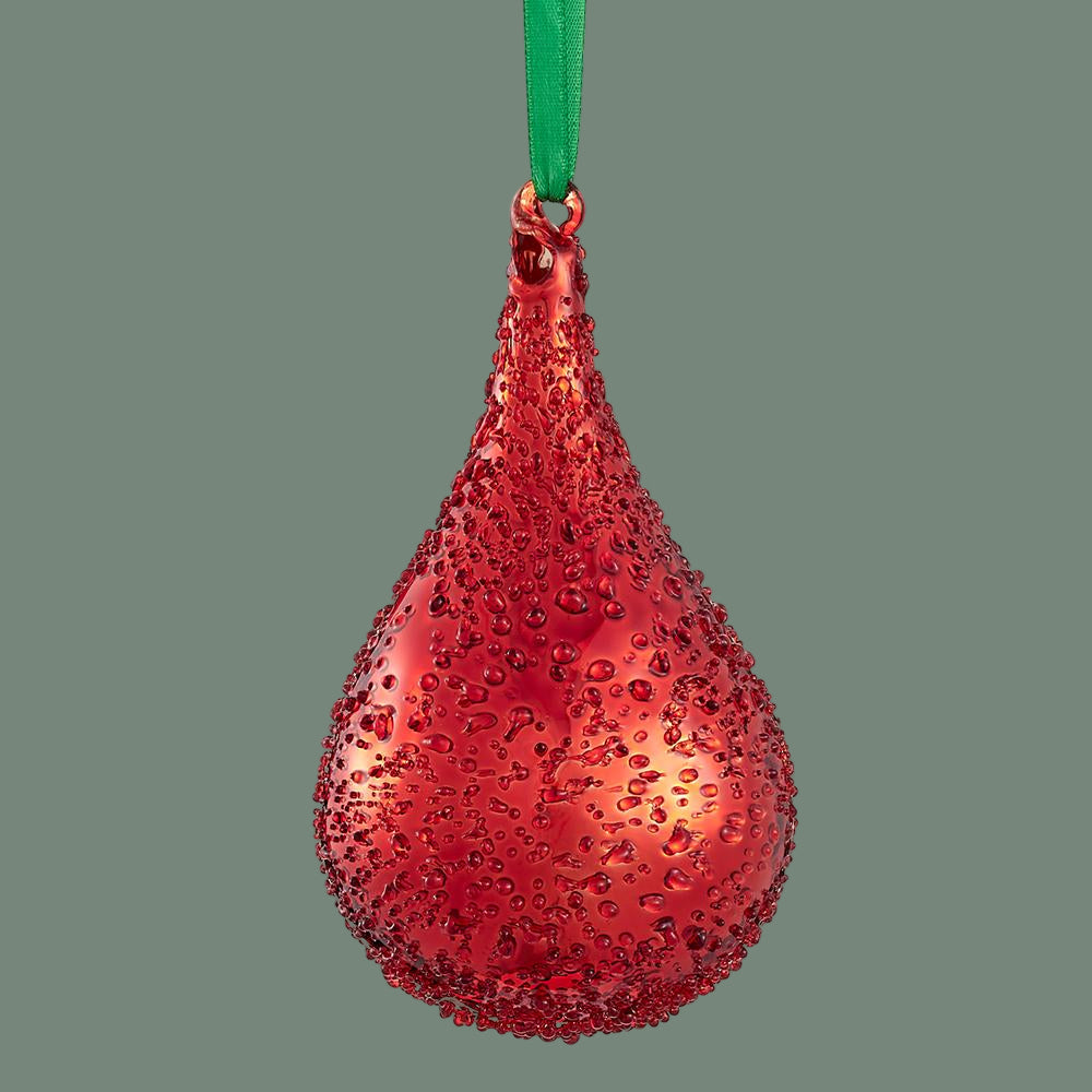 5" RED BEADED GLASS TEARDROP ORNAMENT