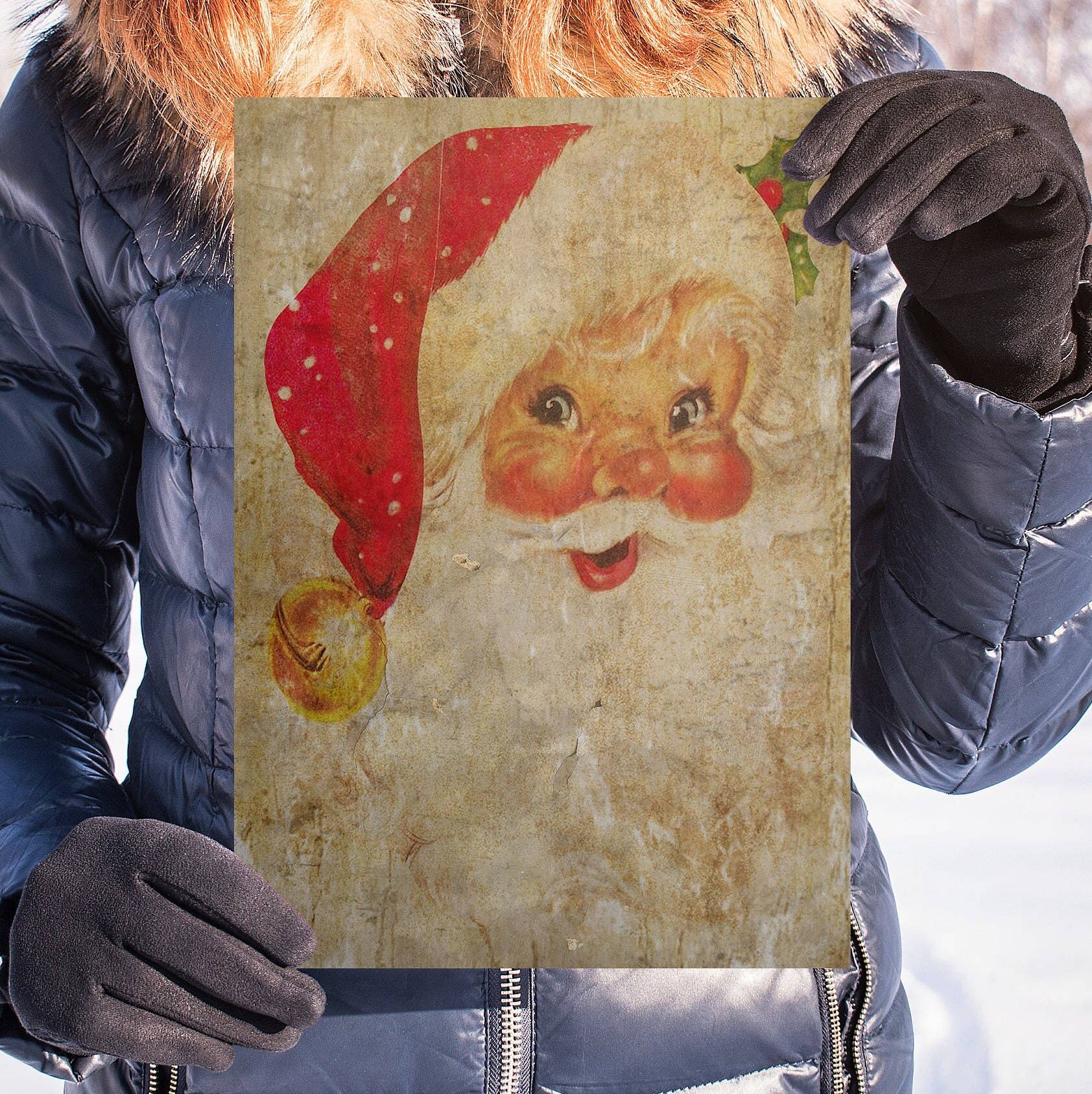 Retro Santa Unframed Canvas Art Vintage Christmas Decor