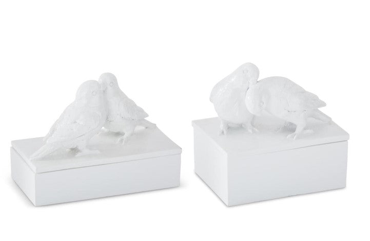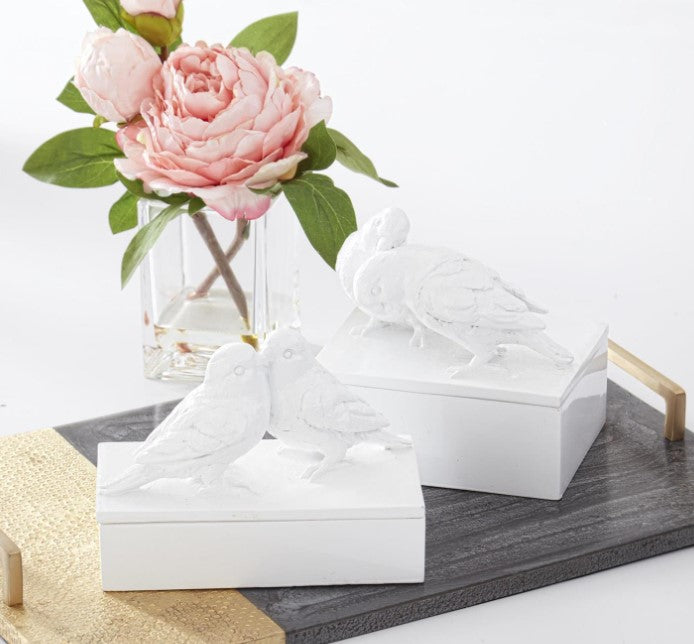 Glossy White Resin Love Birds Lidded Box, Style Options