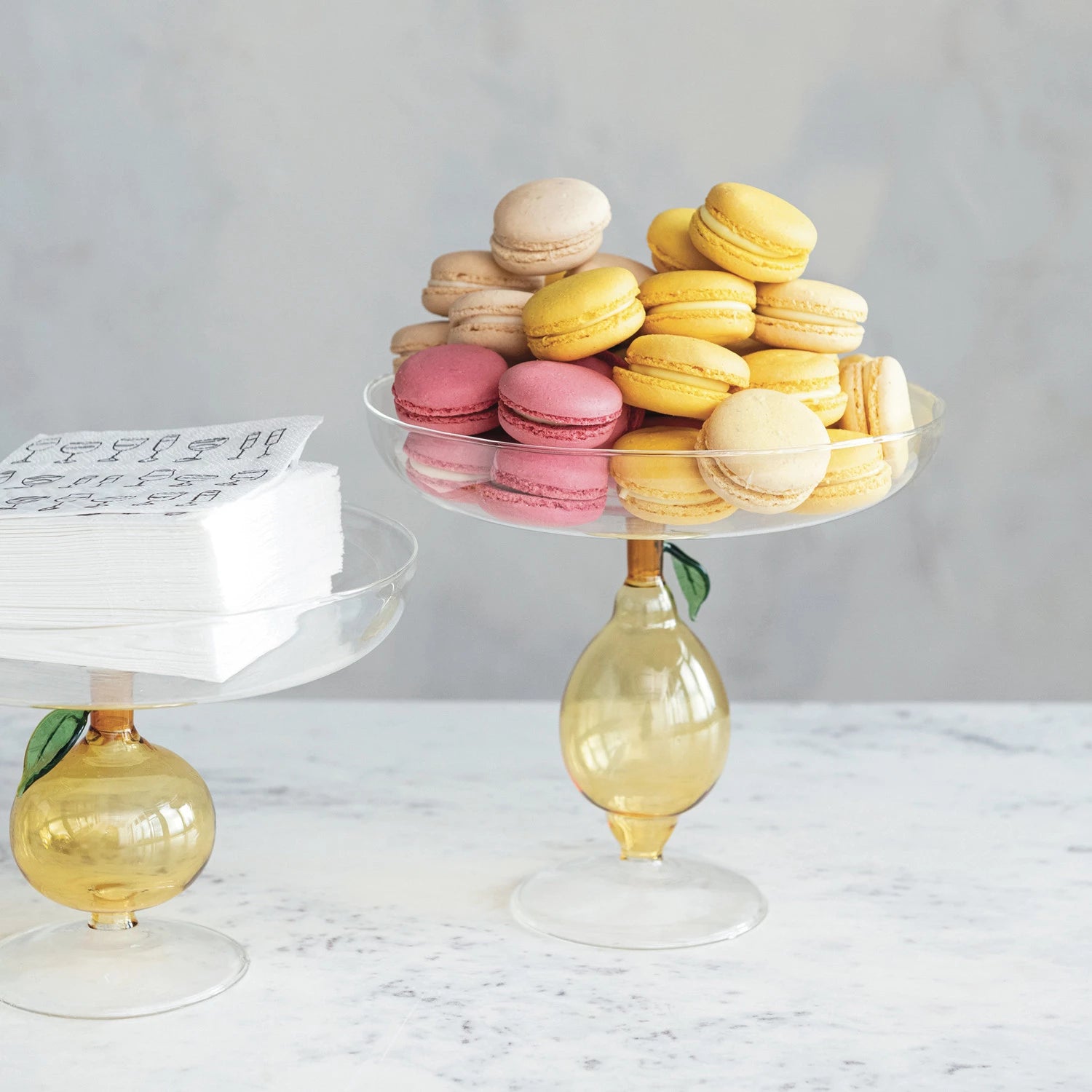 Glass Pedestal with Lemon Shaped Base, Green & Amber Color