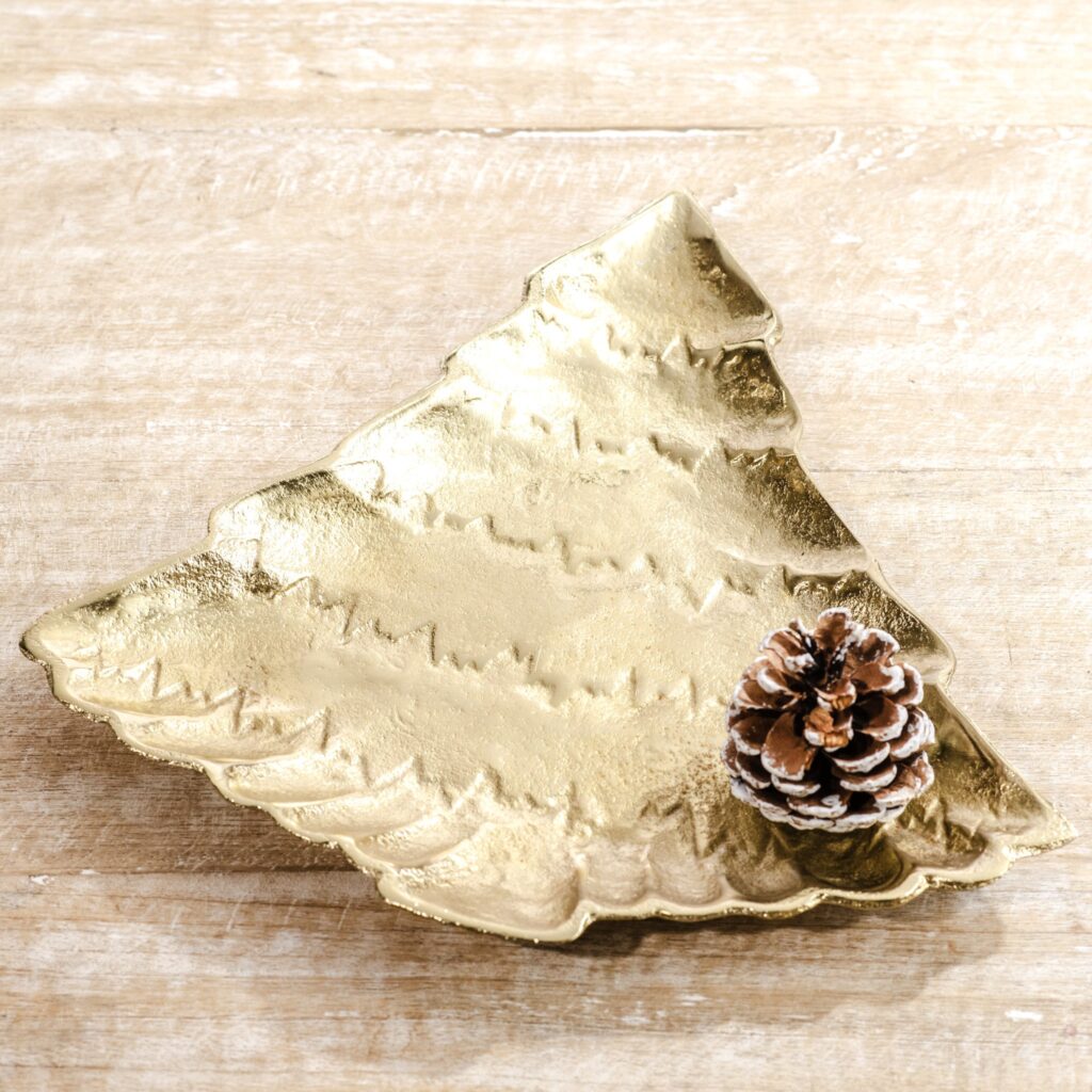 Small Cast Aluminum Tray/Dish on Foot Antique Brass