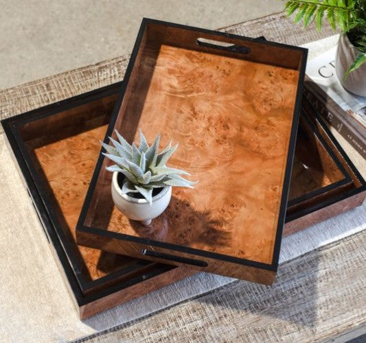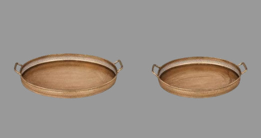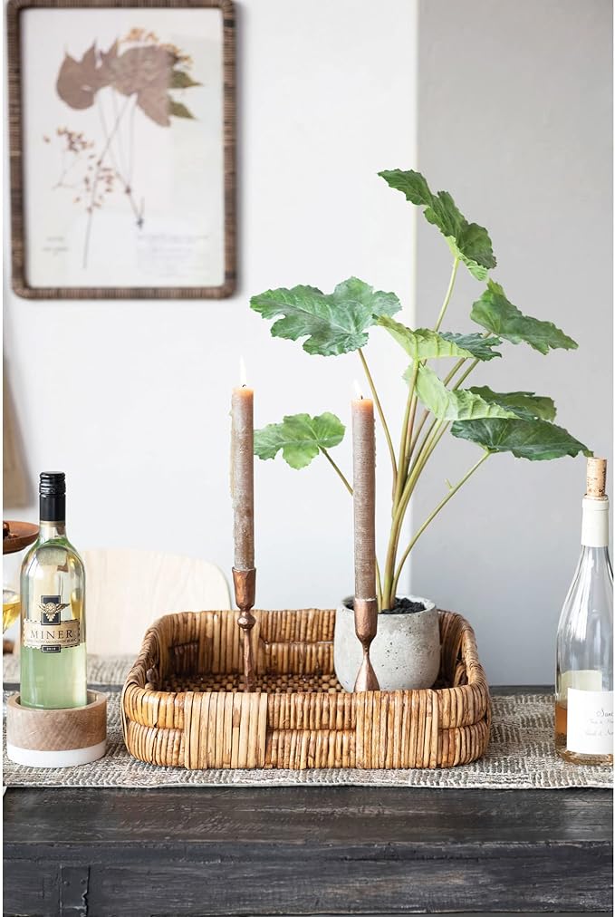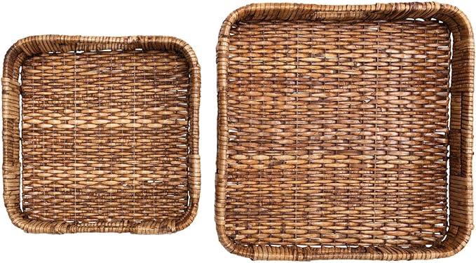Decorative Hand-Woven Water Hyacinth & Rattan Trays with Handles, Size Options