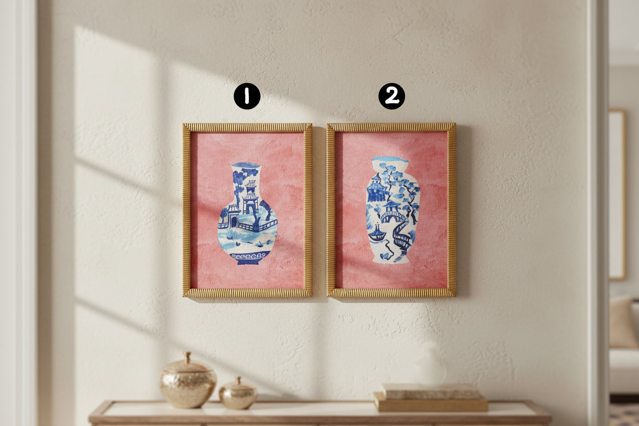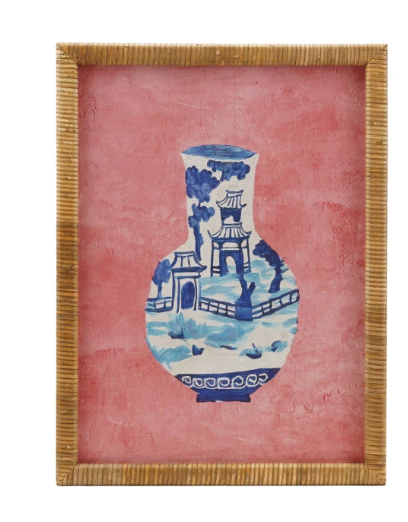 Pre Order Oriental Vase Glass Framed Rattan Wrapped Wood Print, 2 Style Options