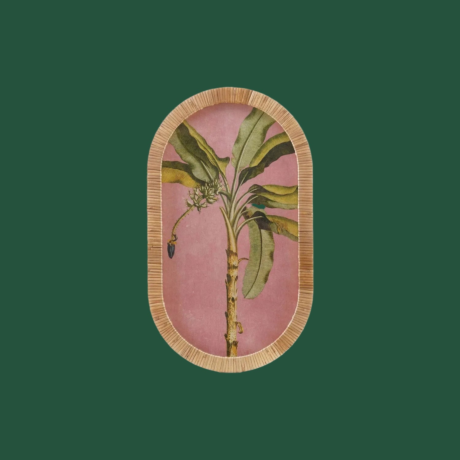 Pre Order 23.5"H Palm Tree Print in Oval Rattan Wrapped Frame w/ Glass
